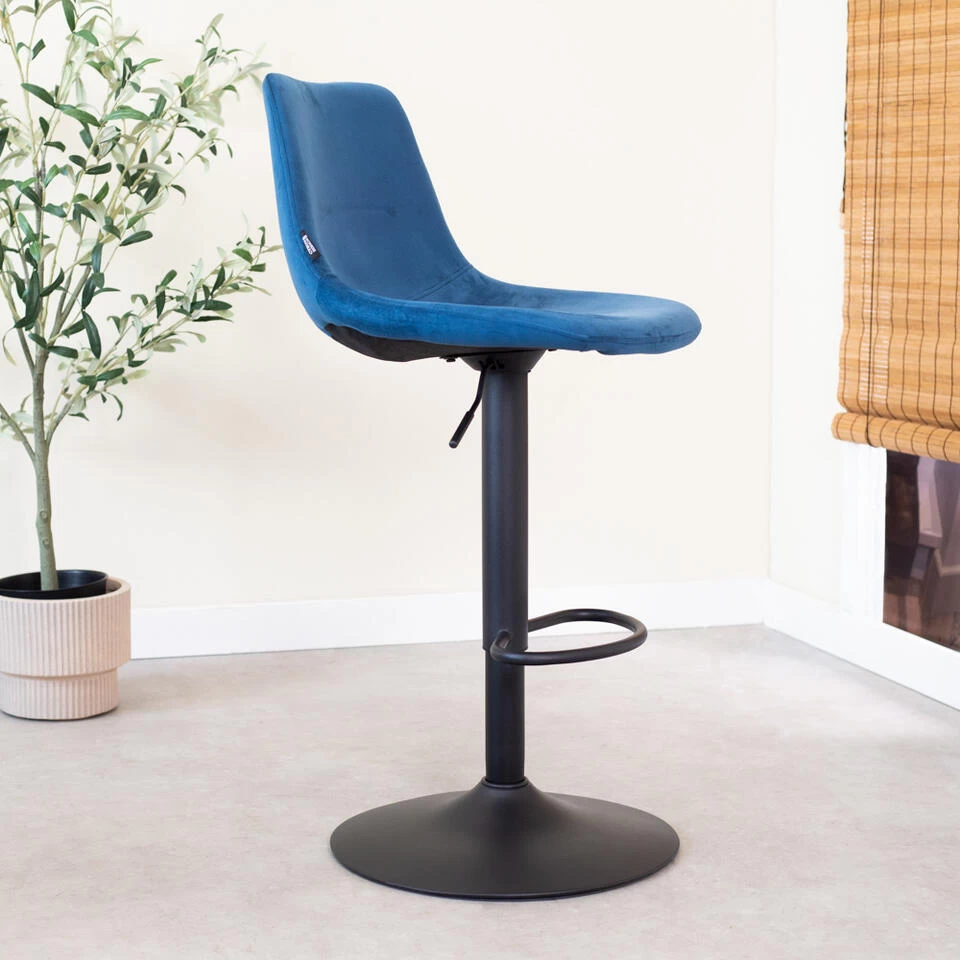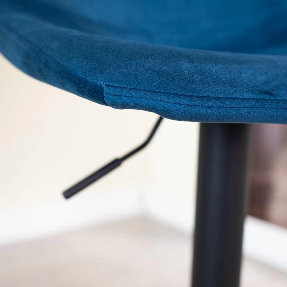 Barkruk Nora is een velvet barkruk met een luxueuze en modieuze uitstraling. De barkruk bevat een prachtige blauwe kleur, is draaibaar en is verstelbaar in hoogte. Deze verstelbare barkruk beschikt over een zithoogte van 59-79 cm en is hierdoor ideaal om aan een bartafel of kookeiland van 90-110 cm hoog te plaatsen. De barkruk is afkomstig van het merk Cyrus Benson, een merk dat meubels van goede kwaliteit voor betaalbare prijzen ontwikkeld. Barkruk Nora is de perfecte toevoeging voor ieder interieur.