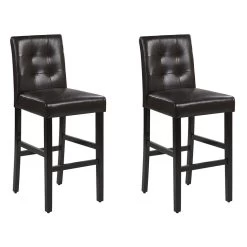 Comfortabele en stijlvolle barkruk in een set van 2. Deze stijlvolle barstoelenset is een prachtige manier om jouw keuken of eetkamer te verfraaien. De brede, dik gestoffeerde zitting en gecapitonneerde rugleuning garanderen ongeëvenaard comfort. De hoogwaardige materialen, waaronder rubberhout en fijn kunstleer, geven de hele barkruk een luxe en moderne uitstraling. De poten worden ondersteund door antislipkussentjes, die zorgen voor stabiliteit bij dagelijks gebruik. De barkruk werkt het beste als accentstuk in moderne interieurs met retro-geïnspireerde decors.