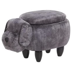 Hocker voor kinderen in hond vorm. Met een vriendelijk gezicht met schattige neus en hangende oren zorgt deze hond ervoor dat jouw kleintjes zich ‘s nachts veilig voelen. Het stevige lichaam bedekt met fluwelen bekleding voelt super aangenaam aan en is perfect om te knuffelen. Dankzij een verborgen opbergruimte wordt het opbergen van speelgoed veel gemakkelijker. Deze poef wordt de favoriete speelkameraad van jouw kind, een comfortabele stoel of een charmante decoratieve toevoeging aan de kinderkamer.