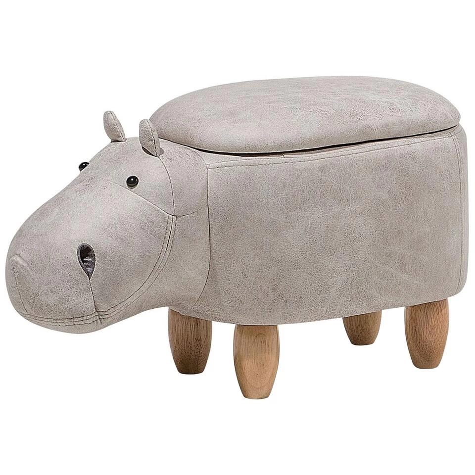 Hocker in vorm van nijlpaard. Schattig en praktisch. Deze leuke dierenhocker in de vorm van een nijlpaard is de perfecte aanvulling voor de inrichting van elke kinderkamer. Maar hij is natuurlijk ook heel leuk voor de grote kinderen onder ons. De poef is uitgerust met opbergruimte voor bijvoorbeeld klein speelgoed.