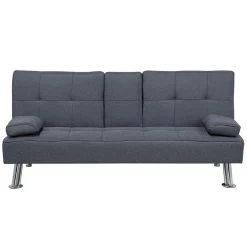 Ruimtebesparende slaapbank met modern design in donkergrijs. De ultieme bank in een ruimtebesparend ontwerp, dit is het ideale meubel voor elke moderne logeerkamer of woonkamer. Gebouwd met een functionele neerklapbare tafel met plaats voor twee kopjes en verwijderbare armkussens. De bank biedt ultiem comfort, of je nu de ligfunctie wilt gebruiken of er snel een bed van wilt maken. De gewatteerde stoffen bekleding past bij de metalen poten en geeft een trendy uitstraling die goed past bij elk interieur. De extra kussens zijn voorzien van een afneembare hoes, wat zorgt voor eenvoudig schoonmaken zonder zorgen over vlekken.