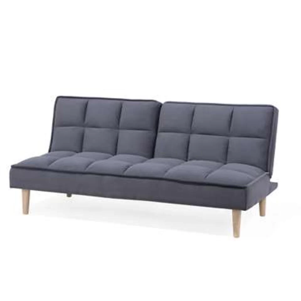 Multifunctionele slaapbank in donkergrijs. Overdag is deze slaapbank een gezellige, comfortabele bank en ‘s avonds kan de bank worden uitgeklapt tot een comfortabele, ruime slaapplek in slechts een paar eenvoudige stappen. Een ideale oplossing wanneer je ruimte wilt besparen. De duurzame donkergrijze polyester hoes heeft een hip uiterlijk dankzij het vierkante gewatteerde patroon.