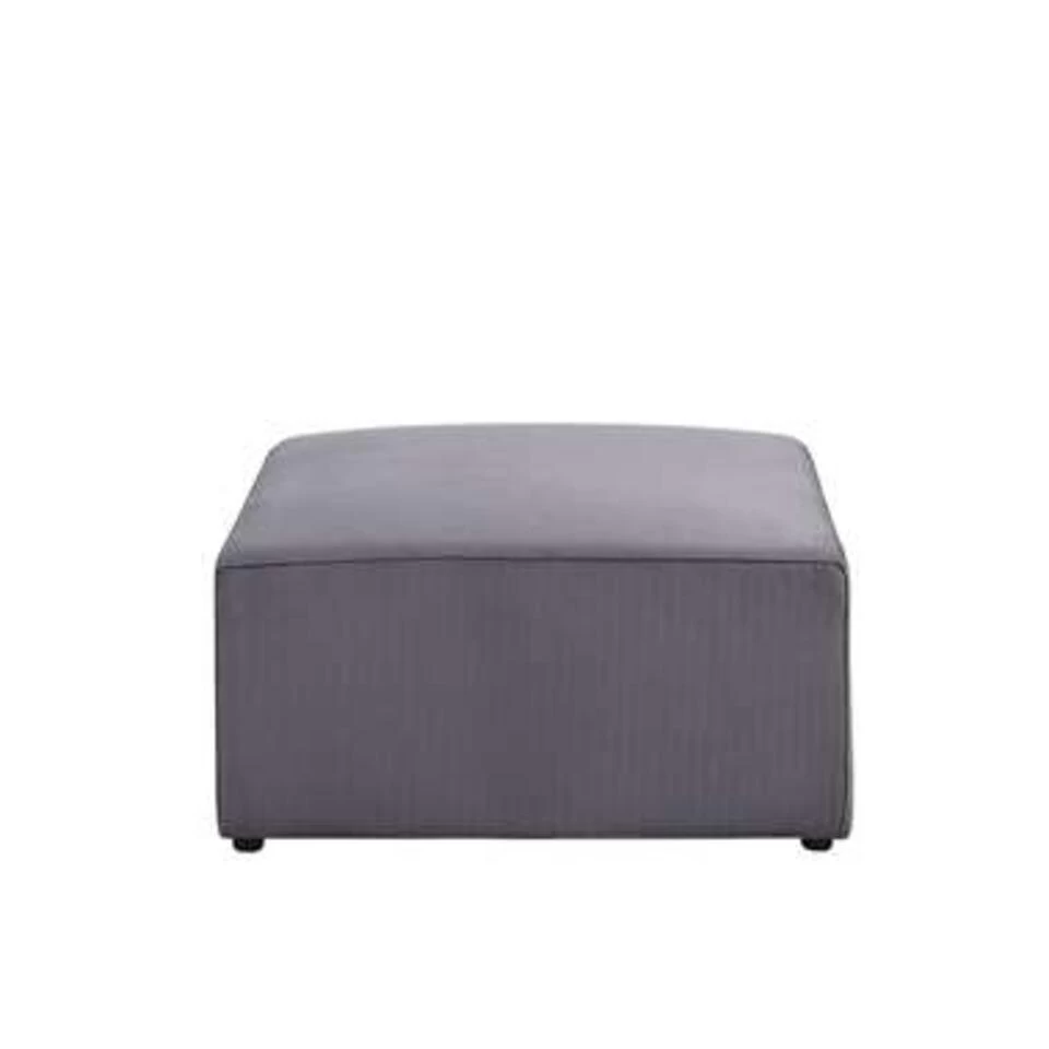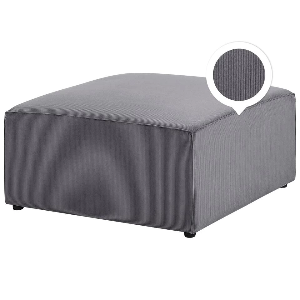 Trendy ottomaan in subtiel grijs ribstof . Maak je woonkamer stijlvol en overzichtelijk met deze moderne ottomaan. De corduroy-bekleding voelt zacht aan en heeft een opvallende geribbelde structuur, wat hem een elegante uitstraling geeft. Combineer dit meubel met andere modulaire stukken uit de collectie om verschillende sofa configuraties te maken.