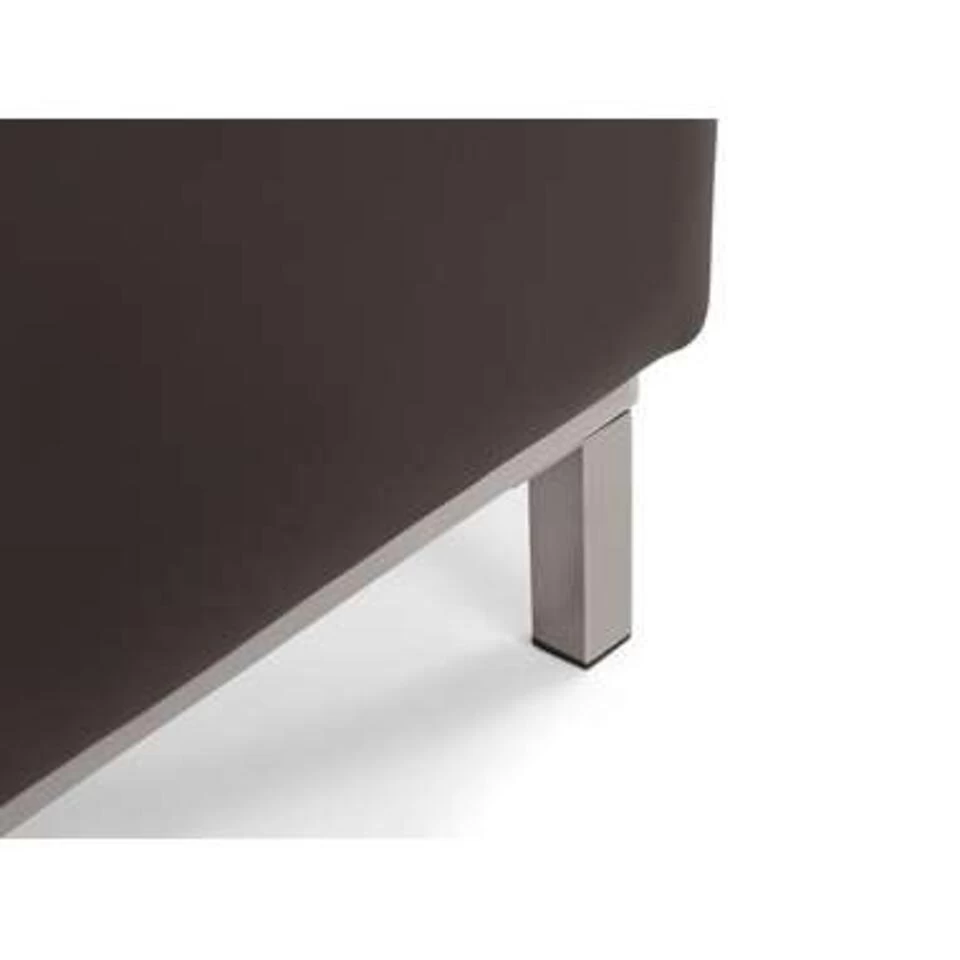 Bruine, elegante ottomaan. Deze poef is een echt prachtstuk. Je kunt ze in een set kopen met de bank, maar ze zijn vanwege hun populariteit ook afzonderlijk verkrijgbaar. De stevige, duurzame stoffen hoes is zorgvuldig genaaid en strak over de comfortabele voering getrokken. De verchroomde poten geven de ottomaan een modern tintje en vervolledigen het ontwerp.
