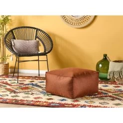 Geweven vierkante poef. Geef je interieur een uniek gevoel met speciale accessoires die dankzij hun uitzonderlijke design elke ruimte opvrolijken. Deze poef is gemaakt van hoogwaardige natuurlijke materialen met behulp van een traditionele hindoeïstische weeftechniek genaamd panja. Dit stuk in kilimstijl kan ook handig zijn wanneer je een extra zitplaats of een voetenbankje nodig hebt om je na een lange dag uit te strekken.