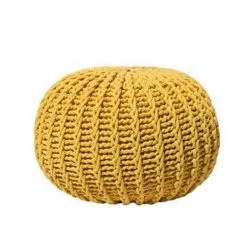 Comfortabele gebreide poef in geel. Als je op zoek bent naar een vrolijk accent om je interieur op te vrolijken, dan is deze schattige gebreide ronde poef perfect. Met dik weefsel in een warme kleur en stevige, hoogwaardige vulling, kan het dienen als voetenbank, als basis voor een tafeltje of gewoon als decoratief stuk – de mogelijkheden zijn eindeloos. Wees creatief met het mixen van kleuren en maten om een ideale compositie voor je woonruimte te maken en geniet van de charmante moderne sfeer.