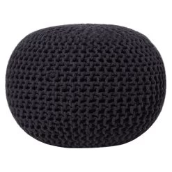 Zwarte katoenen poef. Als je op zoek bent naar een vrolijk accent om je interieur op te vrolijken, dan is deze schattige gebreide ronde poef perfect. Met dik weefsel in een warme kleur en stevige, hoogwaardige vulling, kan het dienen als voetenbank, als basis voor een tafeltje of gewoon als decoratief stuk – de mogelijkheden zijn eindeloos. Wees creatief met het mixen van kleuren en maten om een ideale compositie voor je woonruimte te maken en geniet van de charmante moderne sfeer.
