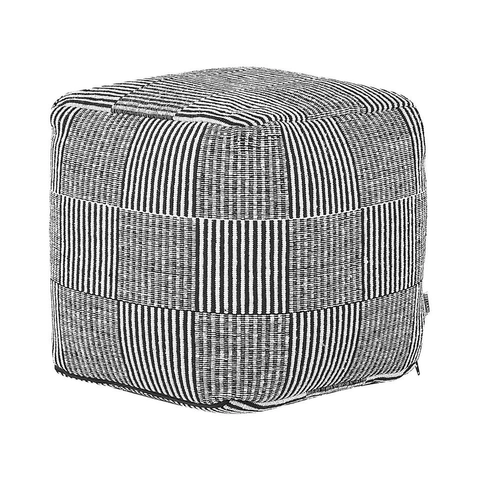 Vierkante woonkamer ottomaan met geometrisch patroon. Multifunctioneel en decoratief, deze stijlvolle poef is een geweldige aanvulling op je woonkamer, hal of slaapkamer. Hij is handgemaakt van duurzaam katoen, is comfortabel en wordt geleverd met een zachte vulling van EPS-balletjes en een ritssluiting voor eenvoudig schoonmaken. Met het zwart-wit gestreept patroon is de poef gemakkelijk te mixen en matchen met zowel moderne als traditionele interieurs.