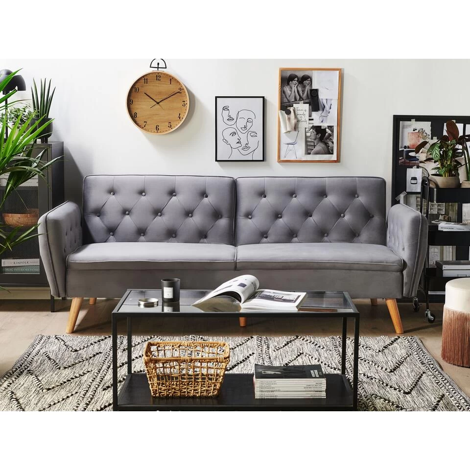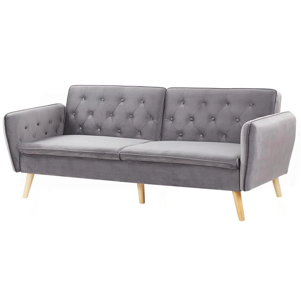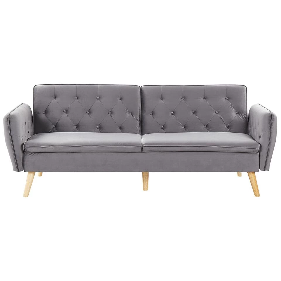 Beliani Slaapbank – BARDU Grijs Fluweel