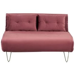 Indrukwekkende fluwelen bank met bedfunctie en sierkussen. Breng een glamoureus gevoel in je interieur met deze functionele en stijlvolle bank. De stoffering is gemaakt van duurzaam en zacht fluweel en de dikke vulling zorgt ervoor dat de bank erg comfortabel is. De luxe uitstraling van het stuk worden verzekerd door de gouden metalen poten. De bijpassende kussens met knopen en afneembare hoes voegen knusheid en charme toe aan het geheel. Daarnaast is de bank om te zetten naar een slaapbank waardoor je je geen zorgen hoeft te maken als er gasten willen blijven slapen.