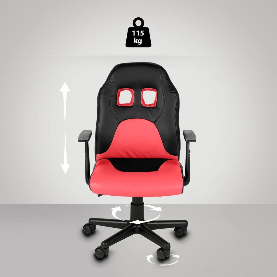 Deze hoogwaardige bureaustoel met sportief design is het juiste voor uw kind ! De onderhoudsvriendelijke kunstleren bekleding oogt niet enkel mooi, zij is vooral heel duurzaam en makkelijk schoon te maken. Het onderstel uit robuuste kunststof geeft de stoel de nodige stabiliteit. Vijf zwenkwielen laten de stoel vlot rollen, zowel op zachte als op harde ondergrond. De zithoogte is traploos verstelbaar en kan aan iedere lichaamsgrootte aangepast worden.