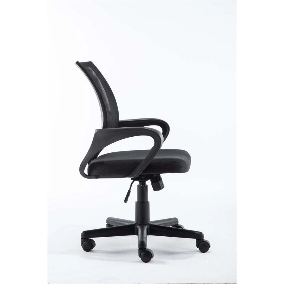 Het onderstel is heel stabiel. De stoel staat stevig op 5 lichtrollende zwenkwielen. De zithoogte is traploos verstelbaar.