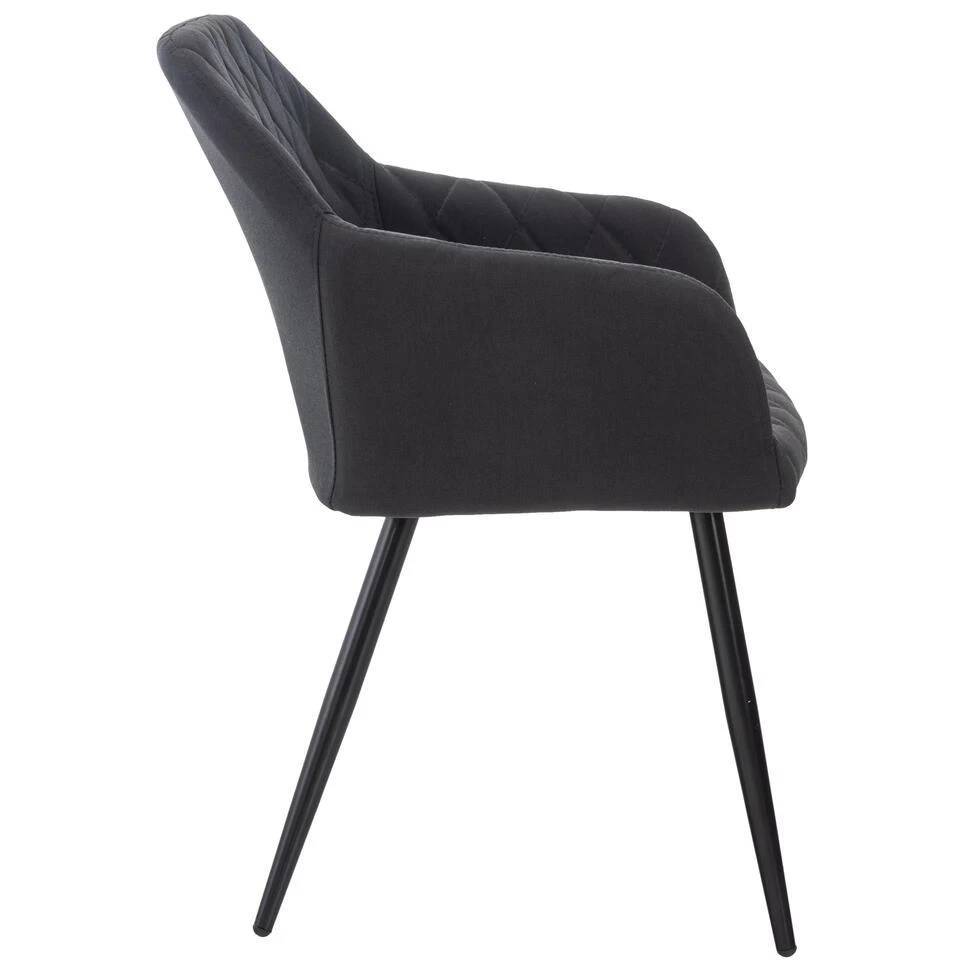 De Shila eetkamerstoel is een comfortabele en stijlvolle zitgelegenheid voor dagelijks gebruik. De stoel heeft een royaal gepolsterde zitting en maakt zo comfortabel zitten mogelijk, ook gedurende een langere periode. Het zitcomfort wordt gecompleteerd door de rugleuning en de armleuningen. Het metalen frame met vier poten belooft stabiliteit en een veilige stand. Deze eetkamerstoel geeft een moderne flair en is een prachtige aanvulling op elke woonsfeer. Bovendien zitten er vloerbeschermers onder de poten, die krassen op de vloer voorkomen. De eetkamerstoel is optioneel verkrijgbaar met fluwelen of stoffen bekleding.