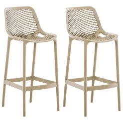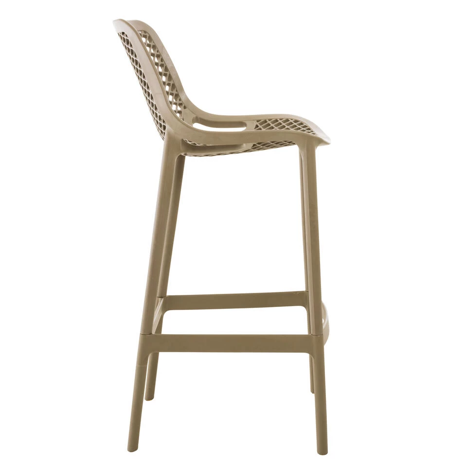 Deze uiterst chique en praktische Air barkrukken passen met hun moderne uitstraling in elke woonruimte. De uitstekende afwerking voldoet aan de hoogste eisen, zowel thuis als buitenshuis. De barkrukken zijn volledig gemaakt van polypropyleen en zijn dus waterafstotend en bestand tegen Uv-licht.