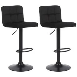 Deze set barkrukken mixt modern design met gezelligheid voor een geslaagde avond. De zetels zijn aangenaam gestoffeerd en hebben een fijne fluwelen bekleding. De hoogte van de barkrukken kan worden aangepast aan elke lichaamslengte. Een trompetvoet van matzwart metaal geeft elke barkruk een stabiele steun. Het frame is ook uitgerust met een stijlvolle voetsteun, die voor nog meer comfort zorgt. De moderne barkrukenset presenteert zich in een goede stemming in blauw, grijs, groen, roze, zwart, bruin, rood en geel.