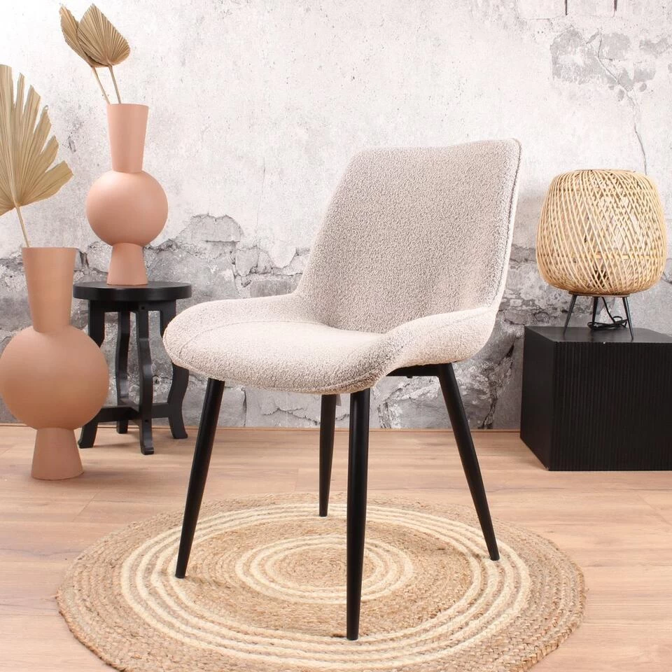 De geliefde Benito eetkamerstoel 2.0 in een nieuw (zacht) jasje. Deze Benito eetkamerstoel is bekleed met een prachtige bouclé stof. Dit geeft deze comfortabel eetkamerstoel een chique uitstraling, helemaal van deze tijd. Benito bouclé is verkrijgbaar in wit, grijs of beige. Voor ieder wat wils. Benito is voorzien van een ruitpatroon in de rugleuning. De zitting is bevestigd op een stevig metalen onderstel in de kleur zwart. Bouclé is helemaal van nu, deze eetkamerstoel past dan ook binnen een Scandinavisch, tijdloos en modern interieur. De stof voelt heerlijk zacht aan en heeft een prettige uitstraling. Daarnaast is Benito ook verkrijgbaar in zeven kleuren velvet.