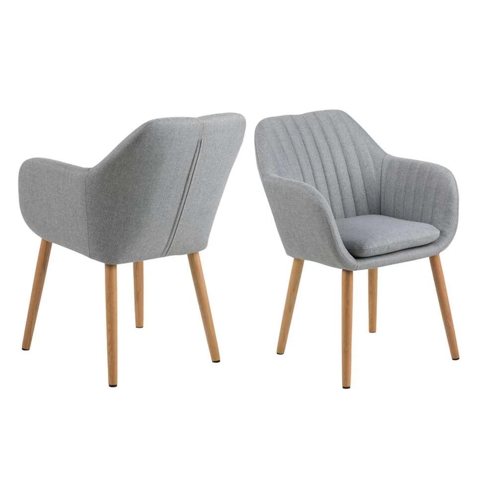 De Meda eetkamerstoel is bekleed met lichtgrijze stof. Grijs is gemakkelijk te combineren met andere kleuren.