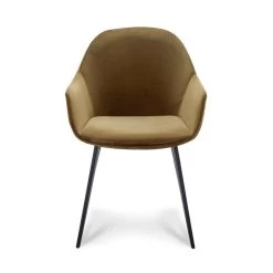 Eetkamerstoel Rouen met armleuningen is bekleed met een hippe, trendy velours/velvet stof in de kleur goud. De stoel is uitgevoerd met donkere, strakke, uiteenlopende en rechthoekige poten. De kuip is aan de buitenzijde voorzien van diamant-stiksels. Dat geeft de stoel een bijzonder uiterlijk! Rouen in een andere kleur bestellen? Dat kan! Deze eetkamerstoel is verkrijgbaar in meerdere velvet/velours kleuren.