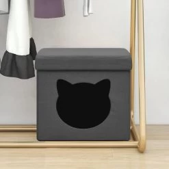VidaXL Opbergkruk Met Kattenpatroon Inklapbaar Stof Donkergrijs