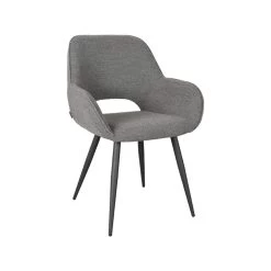 Fer, uitgevoerd in grijs bouclé heeft een ronde zitting voorzien van elegante rondingen. De mooie ‘curve’ van de zitting naar de arm- en rugleuning geeft deze stoel ontzettend veel charme en comfort. De fraaie uitsparing in de rugleuning geeft de stoel een luchtig en speels karakter. De zwarte, naar buiten staande poten zorgen ervoor dat de stoel lekker stabiel op de grond staat en draagt daarnaast bij aan de leuke speelse touch.