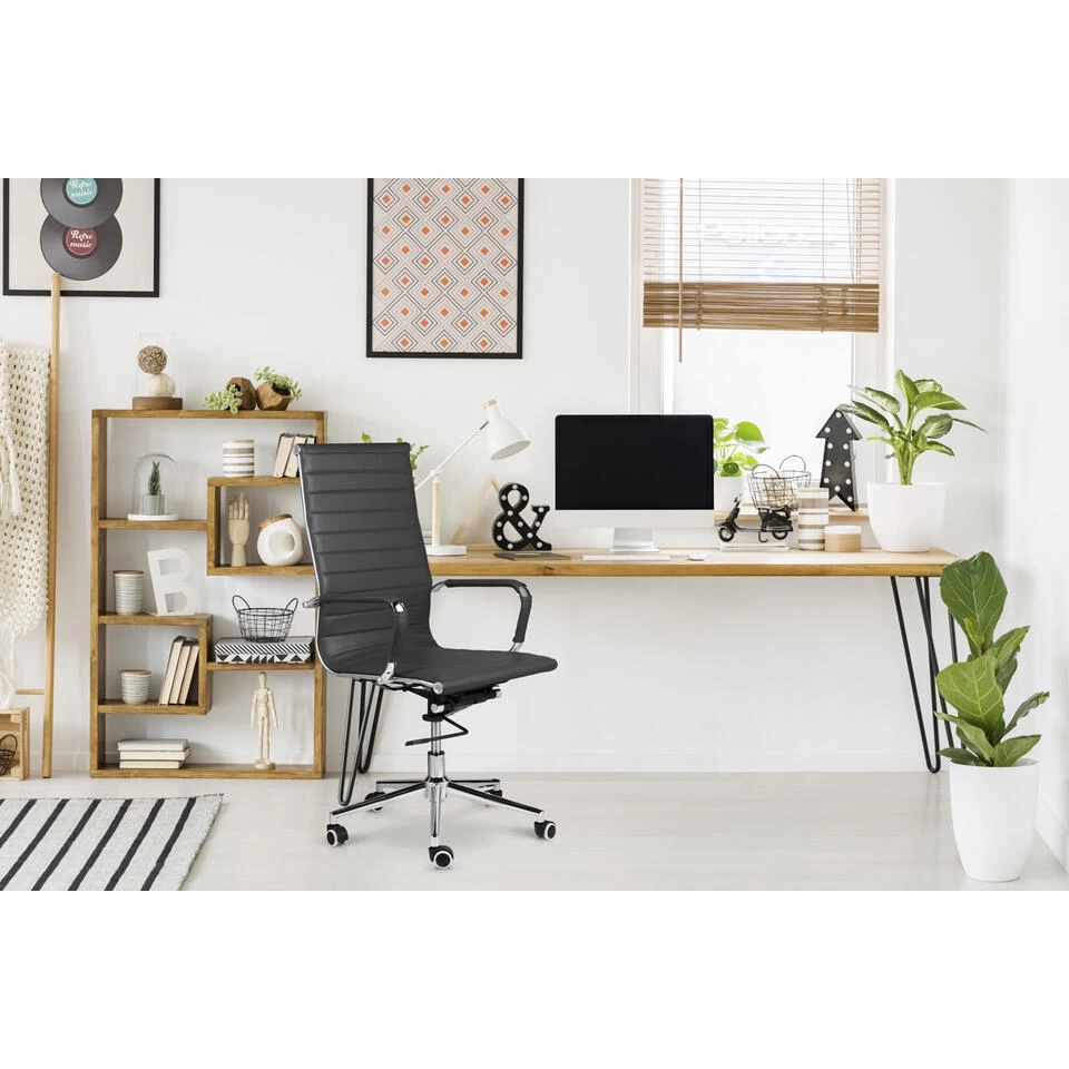 Deze luxe in hoogte verstelbare bureaustoel is klassiek en comfortabel tegelijkertijd. Gemaakt van hoogwaardig PU-leer en gecombineerd met een metalen frame, zorgt deze stoel voor de ultieme classy look van jouw (thuis)kantoor. De draaibare wielen hebben anti slip en rijden soepel over elke vloer. De stoel is dus gemakkelijk te verplaatsen op verschillende soorten vloeren. Met zijn ergonomische ontwerp is hij perfect voor lange werkdagen. Én makkelijk in onderhoud; een vochtig doekje eroverheen en je bent klaar.