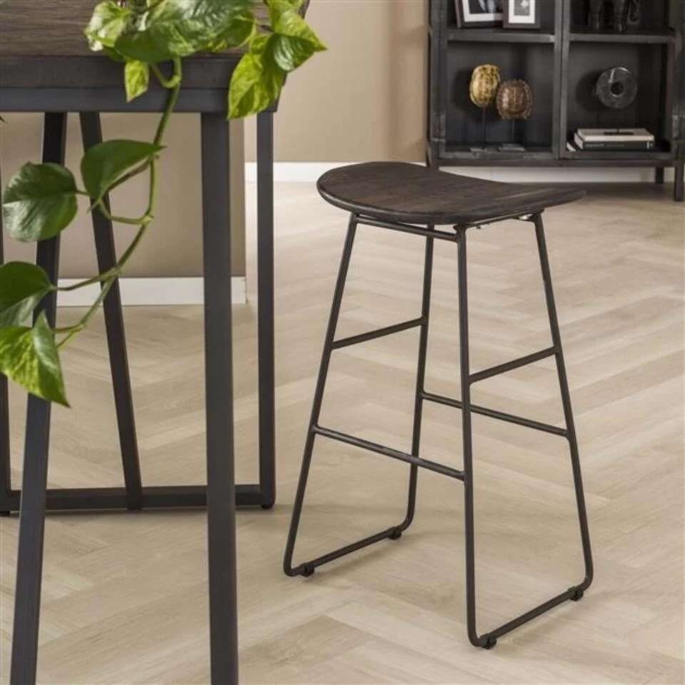 Het frame van de barkruk is gemaakt van zwart gepoedercoat metaal wat zorgt voor stevigheid en een industriële look.