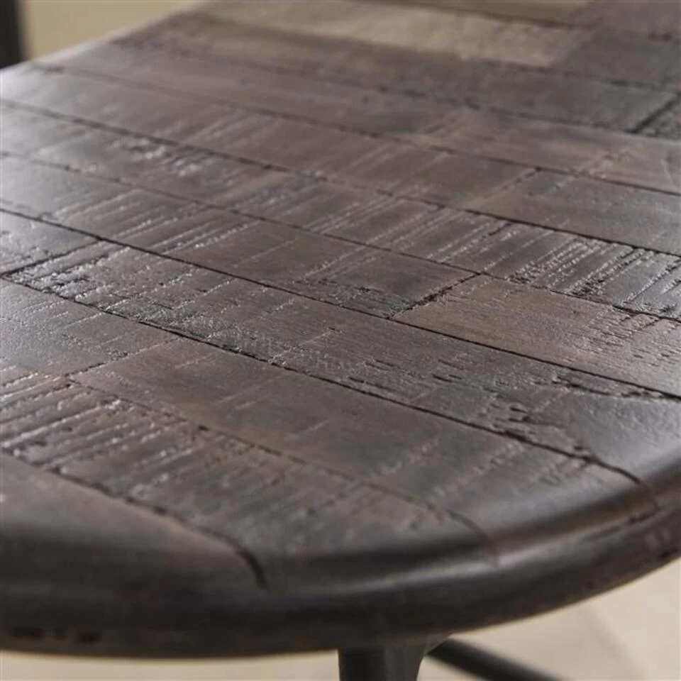De zitting van barkruk Cleo is gemaakt van teakhout en is bruin afgewerkt. Meubels van teak staan bekend om hun goede staat, zelfs na jarenlang gebruik. Teak is een duurzame en vettige houtsoort wat nauwelijks splintert. Hierdoor blijft het meubel zeer lang mooi. De zitting is met visgraat latjes ingelegd en erg goed afgewerkt, wat de stoel comfortabel maakt.