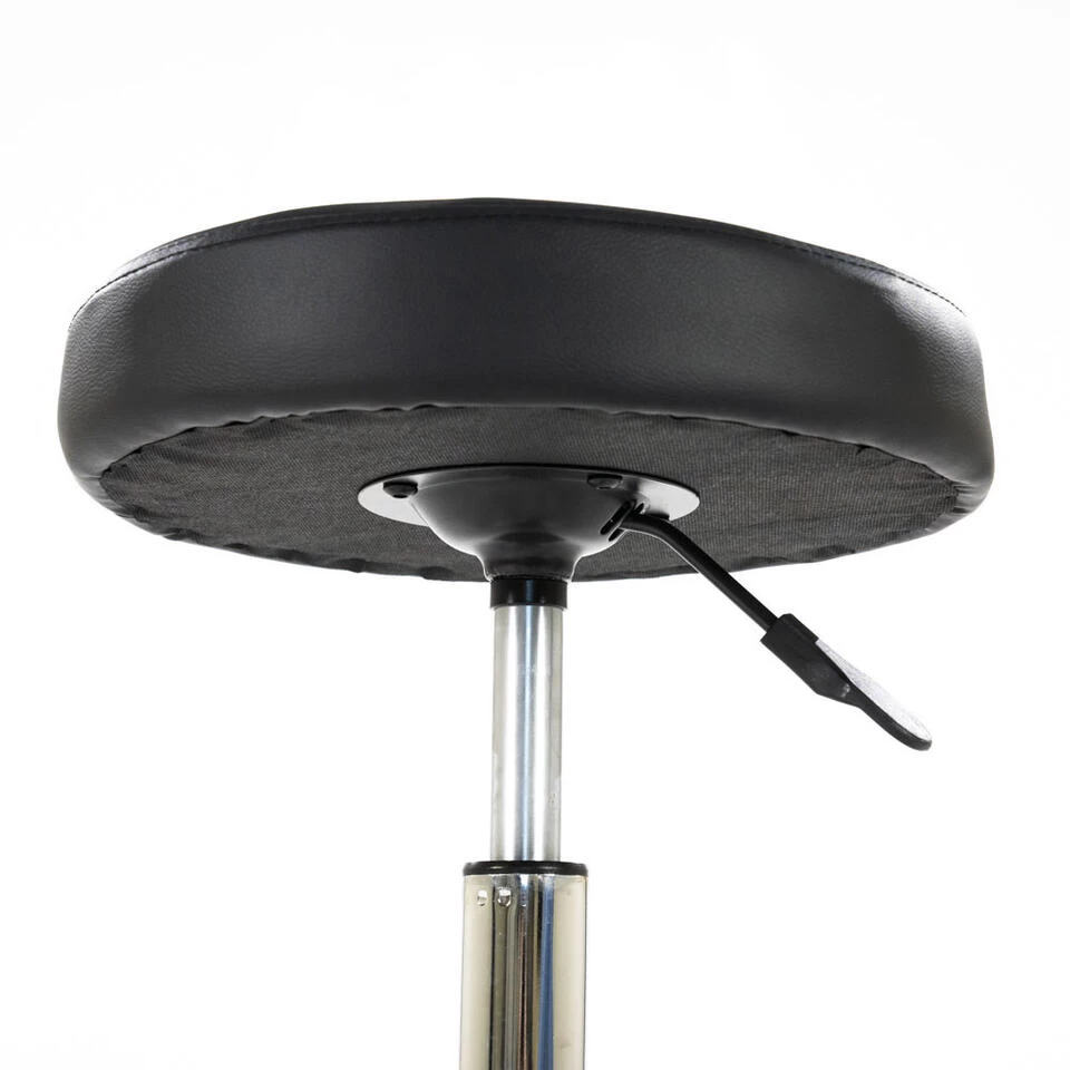 De zitting van de tabouret bestaat uit een comfortabele dikke foamvulling en is bekleed met hoogwaardig zwart kunstleer. Ook het schitterende verchroomde onderstel draagt bij aan de luxe uitstraling van de tabouret. Deze tabouret is dus een echte aanwinst voor elke bedrijfsruimte en woning!