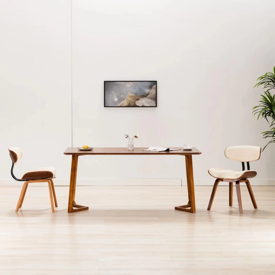Hij heeft een net en eenvoudig ontwerp en biedt maximaal zitcomfort! De stoelen zijn bekleed met eenvoudig te reinigen kunstleer voor optimaal comfort. Het stevige, gebogen houten frame voegt unieke schoonheid en stijl toe. De 4 houten poten zorgen voor stevigheid en stabiliteit. Bovendien maakt het ergonomische ontwerp de eetkamerstoelen zeer comfortabel om urenlang op te zitten.