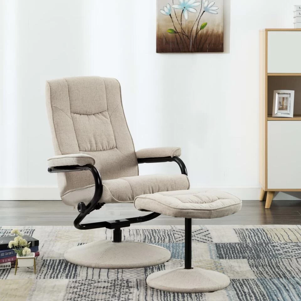 De stoel heeft een stevig houten en metalen frame gevuld met schuim met hoge dichtheid en is bekleed met hoogwaardige stof voor maximaal comfort. De dikke zitting en zachte rugleuning zijn zeer comfortabel. Daarnaast kan de rugleuning naar achteren worden versteld en kan je je voeten op het voetenbankje leggen.