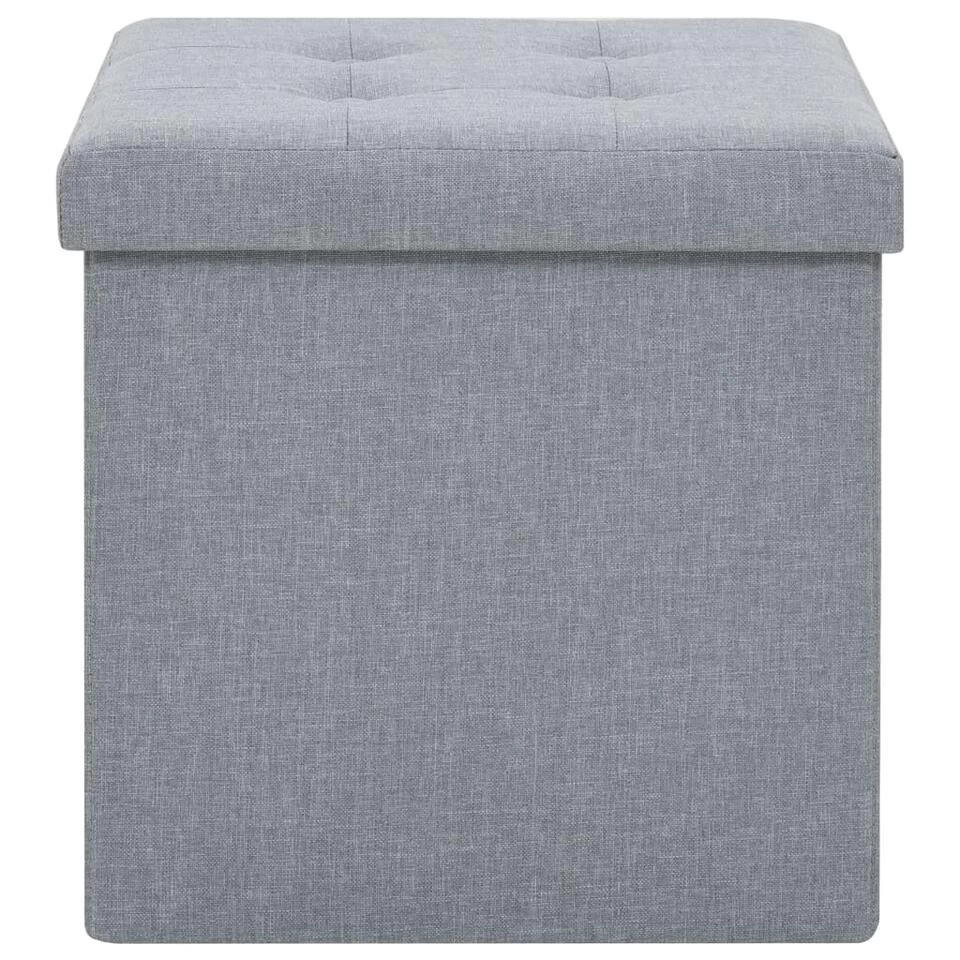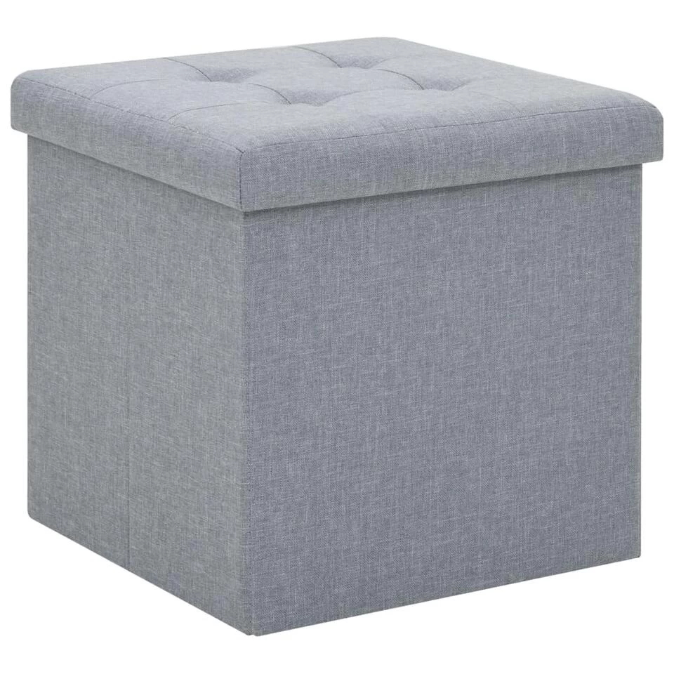 Dit opslagkrukje is gemaakt van MDF en is bekleed met kunstlinnen, dat duurzaam, stabiel en comfortabel is om op te zitten. De grijze kleur zorgt ervoor dat vlekken en stof niet makkelijk te zien zijn. Het heeft een afneembaar zitvlak en heeft voldoende opbergruimte om een groot aantal verschillende spullen buiten het zicht en toch binnen handbereik te houden. Als de kist niet in gebruik is, kan hij ingeklapt worden om ruimte te besparen.