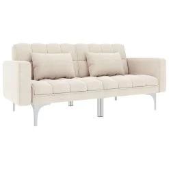 Het houten frame en de metalen poten dragen bij aan de stevigheid en de dikke voering maakt de bank extra comfortbal. Deze slaapbank kan snel en eenvoudig worden veranderd van een bank naar een bed en vice versa. Als bank kan hij in 3 verschillende standen versteld worden. De twee inbegrepen kussens zorgen voor extra zitcomfort.
