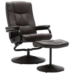 Deze kunstleren televisiefauteuil, compleet met een voetenbankje, combineert stijl en functionaliteit. De set heeft een sterk houten en gepoedercoat frame, is gevuld met schuim met een hoge dichtheid en bekleed met hoogwaardig leer voor maximaal comfort. De dikke zitting en de zachte rugleuning zijn zeer comfortabel. Wanneer de rugleuning naar achteren kantelt, kan je je voeten op het comfortabele voetenbankje leggen.