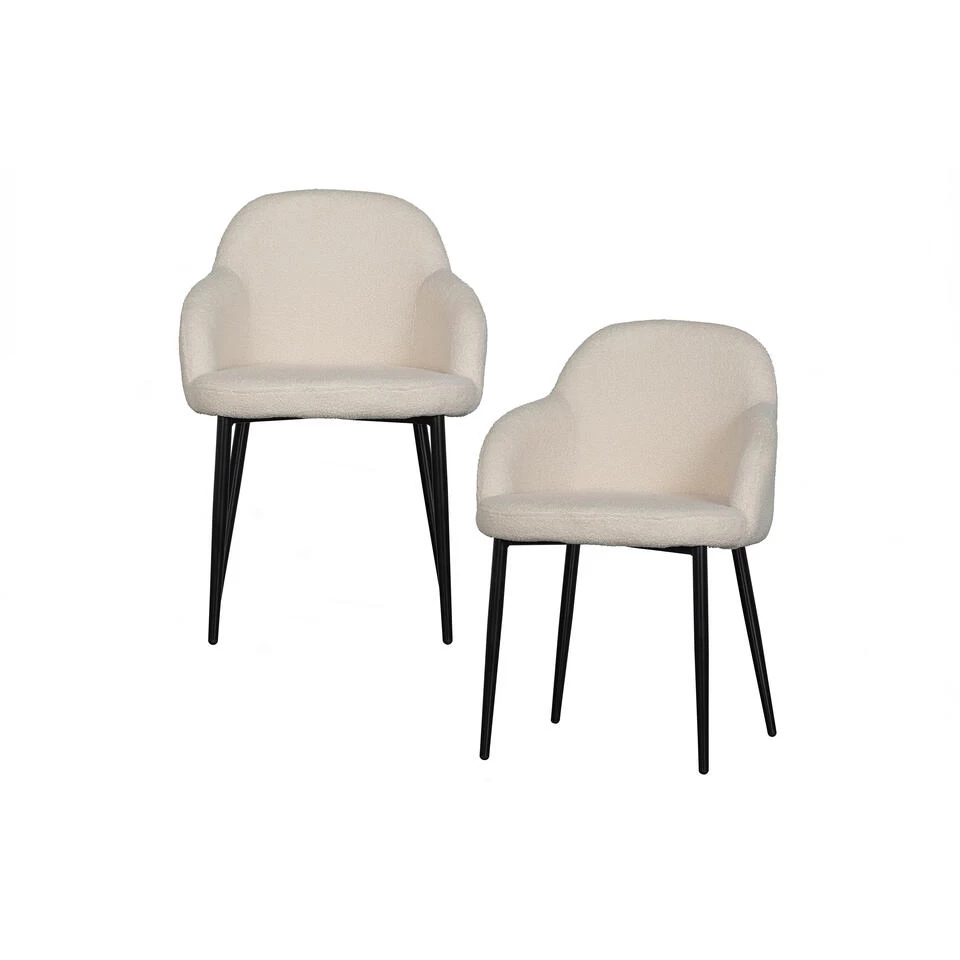 Met de Noortje eetkamerstoel haal je een zichtbaar én voelbaar comfortabele zitplaats in de eethoek. De Noortje eetkamerstoel komt uit de From PB With Love-collectie en heeft een strak en stijlvol design. De zitting en leuningen van Noortje zijn bekleed met een mooie teddy stof (100% polyester) en het zwarte onderstel geeft de eetkamerstoel een tijdloze uitstraling.