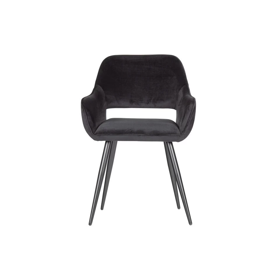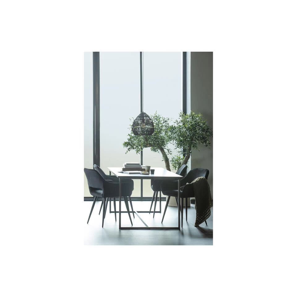 De eigentijdse WOOOD eetkamerstoel Jelle in fluweel gestoffeerd in de kleur zwart heeft een opvallend gevormde zitting. Dit is niet alleen fraai van uiterlijk, maar de stoel zit ook heerlijk. De afmetingen zijn (hxbxd): 80x60x57 cm. De zithoogte is 49 cm, zitdiepte 45 cm en zitbreedte 42 cm. De comfortabele armleggers (hoogte van de vloer gemeten tot bovenkant armlegger 65 cm) verhogen het zitcomfort. Deze eigentijdse eetkamerstoel Jelle past in elke woonstijl. Met zijn fraaie vormgeving en zwart gelakte metalen onderstel is deze stoel helemaal van nu.