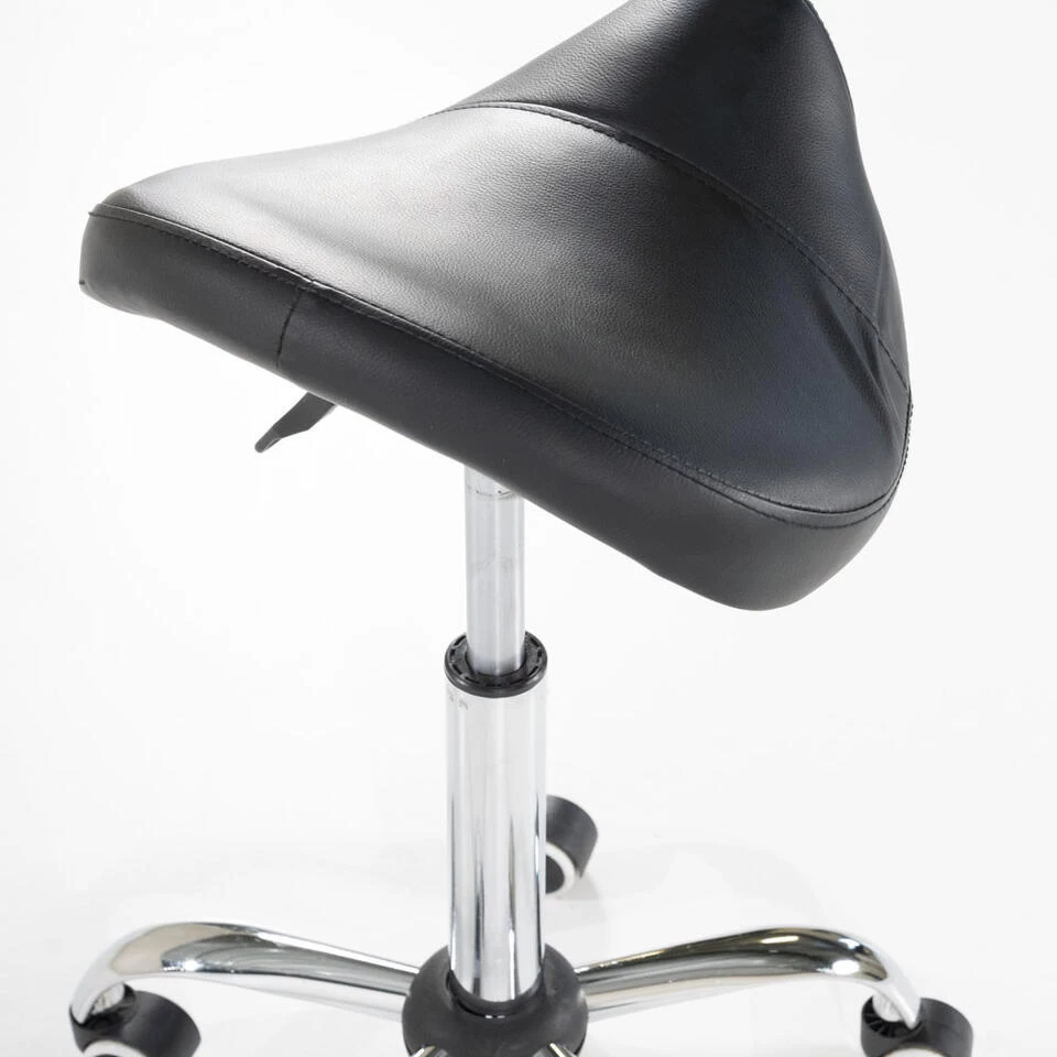 Het stevige chromen onderstel geeft de kruk een luxe uitstraling. De comfortabele zitting van de zadelkruk is bekleed met hoogwaardig zwart kunstleer en is gemakkelijk af te nemen met een vochtige doek. Past zwart niet helemaal in jouw interieur? De zadelkruk is ook verkrijgbaar in wit en grijs .