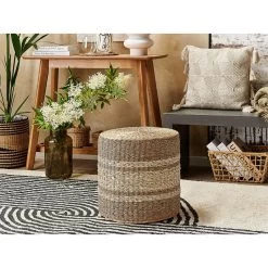 Beliani Poef BARBEL – Beige Waterhyacinth, Zeewier, Palmblad