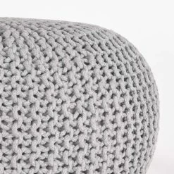 LABEL51 Poef Knitted – Lichtgrijs – Katoen – M
